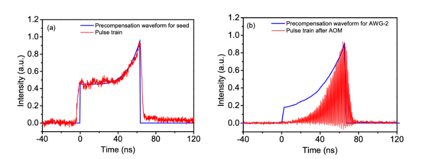 - 二次预补偿调制:TS-AWG-5000/4000 控制低速 AOM(带宽< 200 MHz),实现脉冲预补偿整形以对抗增益饱和,并抑制放大自发辐射(ASE)。