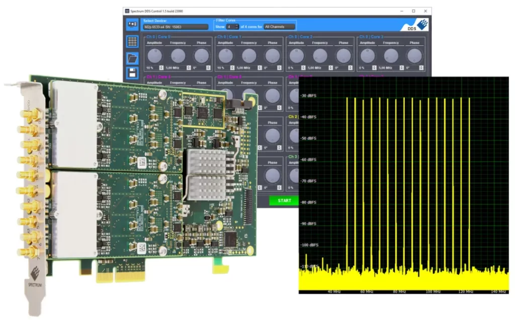 德思特优质合作伙伴Spectrum仪器为其65xx系列任意波形发生器(AWG)推出全新DDS(直接数字频率合成)选件,为生成正弦信号、精细可调参考源、合成正弦波、波形序列、频率扫描及调制信号,提供了一套高性价比的解决方案。自此,DDS功能已扩展至Spectrum全系列AWG产品。目前,支持DDS的型号总数超过70款,可实现带宽高达3.9 GHz的多音调、多通道信号生成。