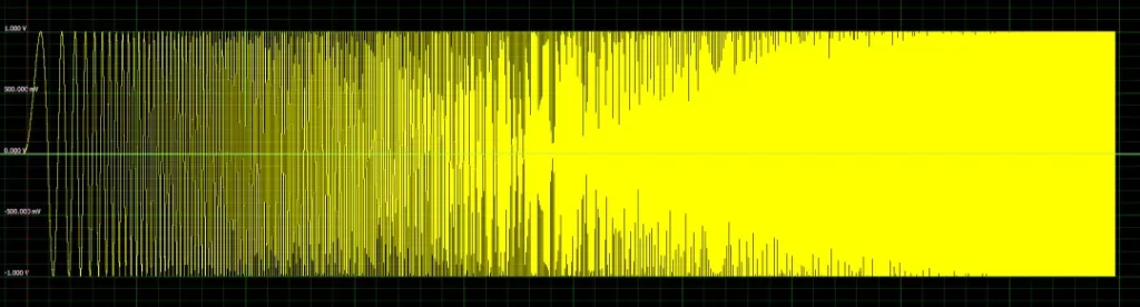 示例1展示了该选件生成从20 Hz到20 kHz慢速扫描正弦波的能力。此类波形常用于驱动振动台,以识别汽车和航空航天应用中的机械共性。65xx系列DDS选件可同时运行多达16个不同频率范围的扫描,显著缩短了测试时间。