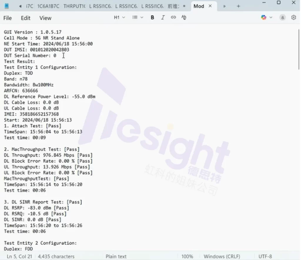 测试结束后,德思特基站模拟器软件自动生成测试报告,重点标注 “附着成功率”“附着时延” 等核心指标,Pass 终端流入下一生产环节;