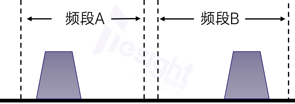 • 定义:两个载波同属于3GPP协议中的某一频段A内,但其在频域上不连续。