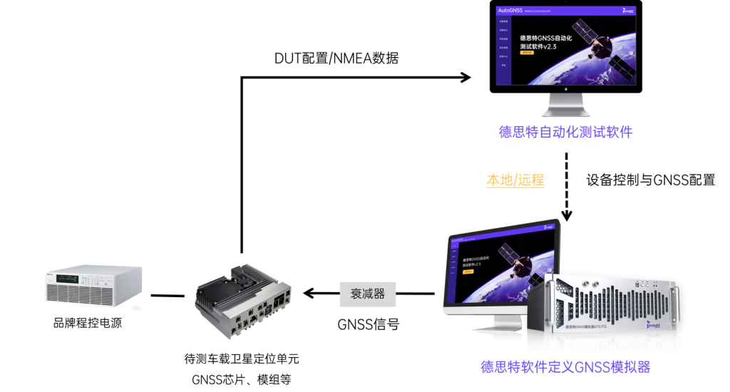 此外,德思特提供根据GB/T 45086.1-2024构建的自动化测试工具,可轻松接入测试方案,可选择集成至GNSS模拟器本地系统或远程控制GNSS模拟器:
