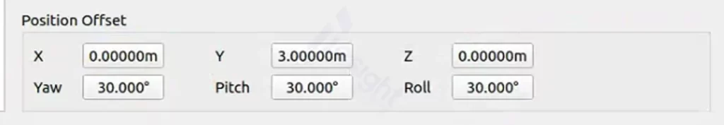 - 主天线相对车辆几何中心偏移量为(0,3,0),且拥有角度偏差(30°,30°,30°)