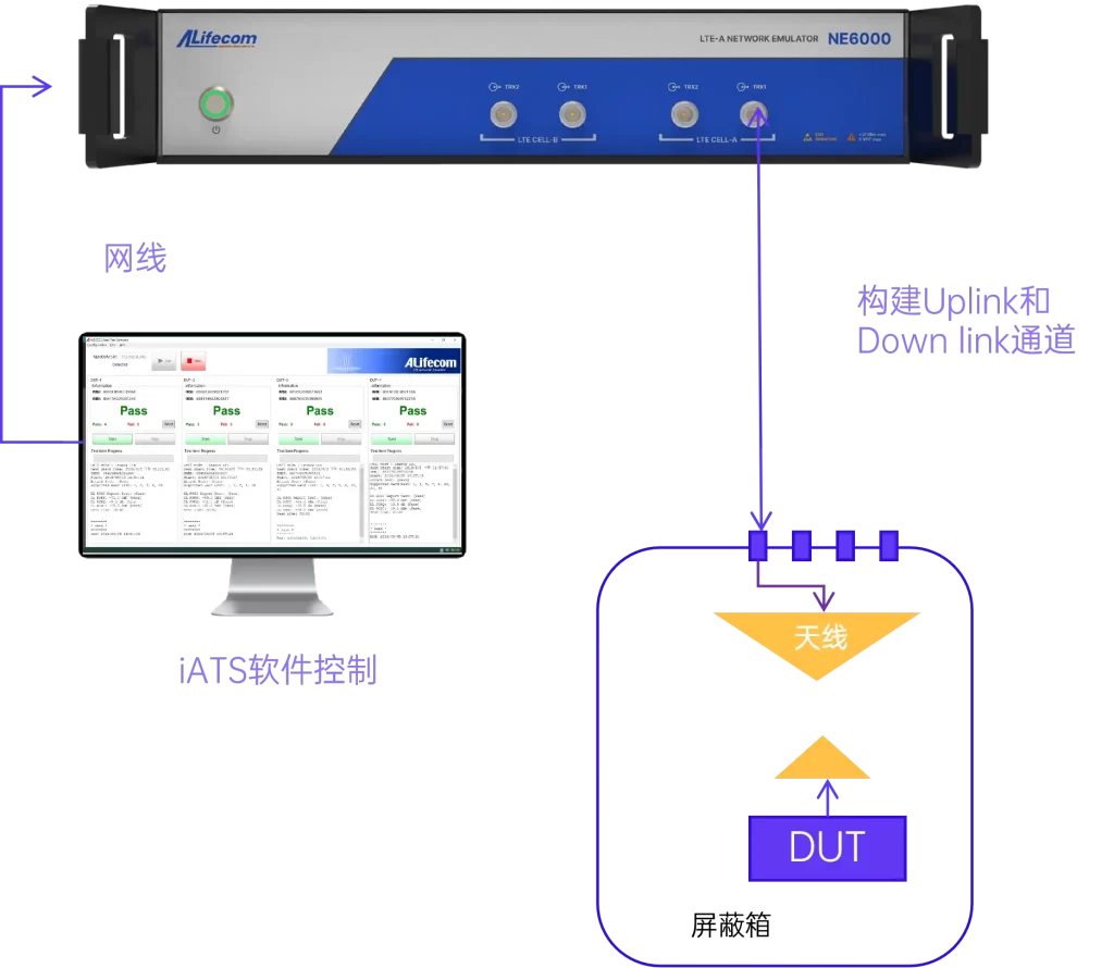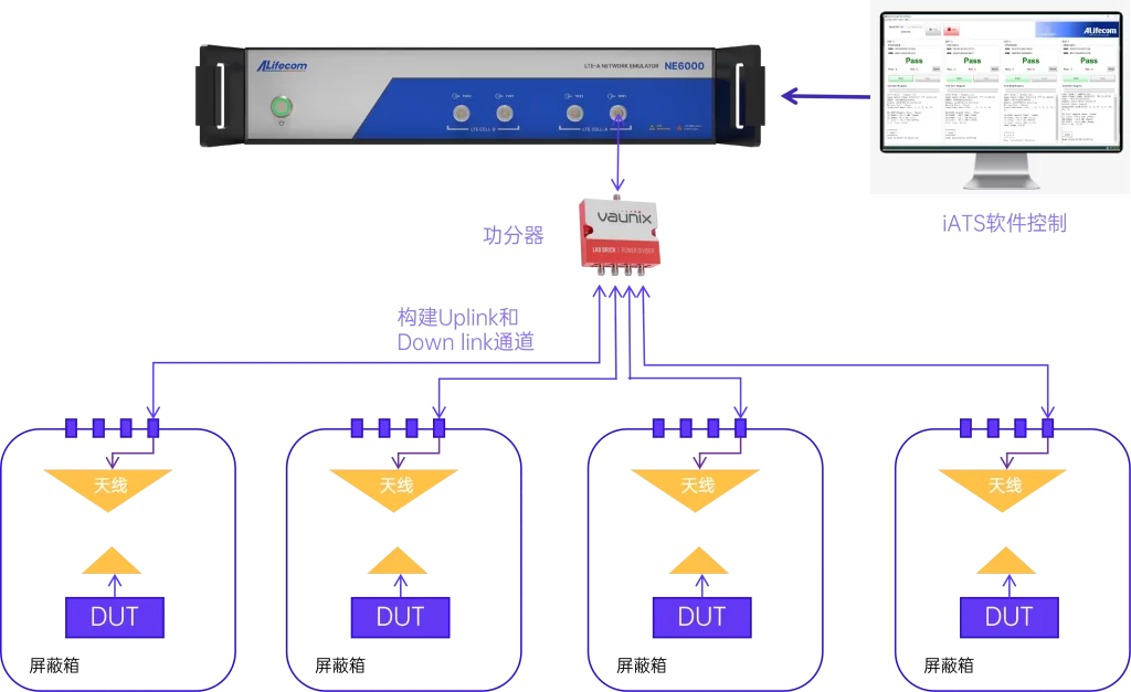 大多基站模拟器只能支持单台UE测试,批量测试效率低,且通过同轴方法测试,人工操作耗时久,无法匹配量产节奏。
