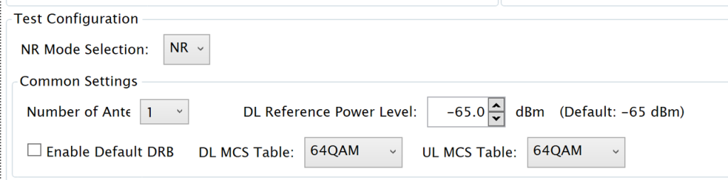 基站模拟器配置软件上配置目标频段、运营商、信号强度等,如:5G N78频段、-85dBm信号、PLMN 46000(中国移动)